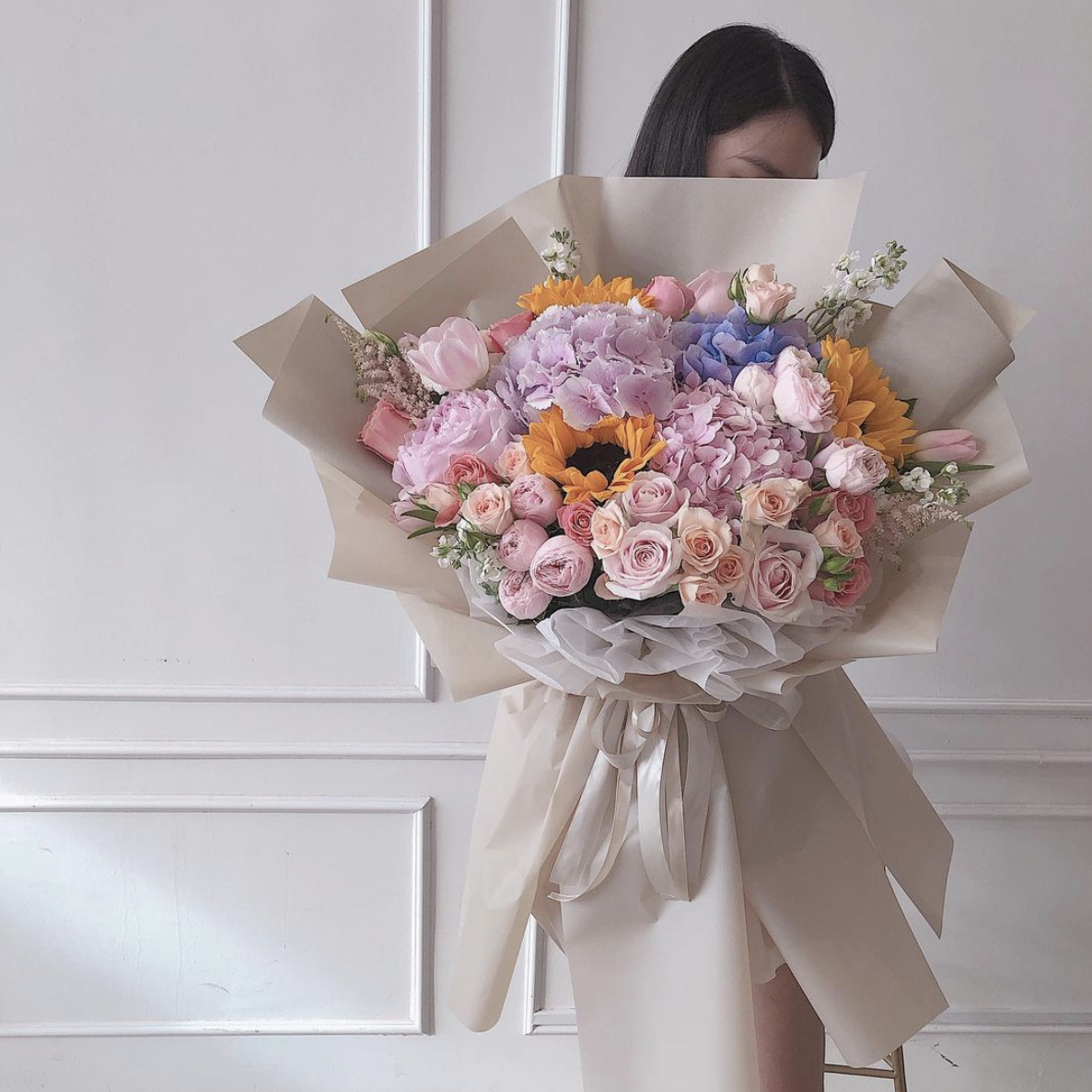 XL: 30 - 35 stalks of main flowers (Include: Roses, Eustoma, Tulips, Hydrangea, Fillers & Leaves)